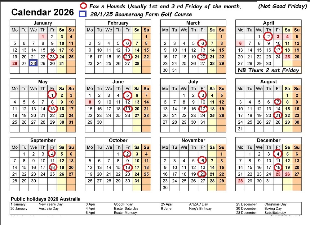 Hello and welcome. It is free to join. Fox n Hounds 23/1/2026 is the first event for 2026.
